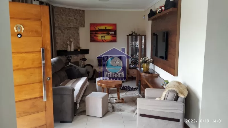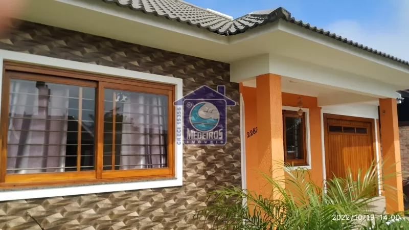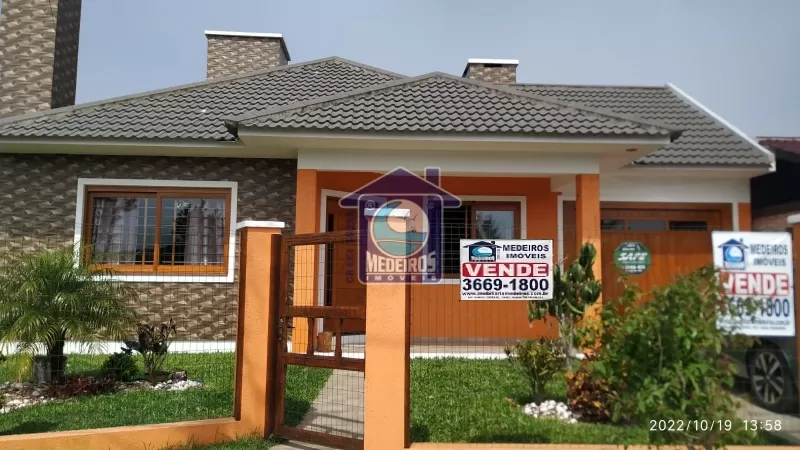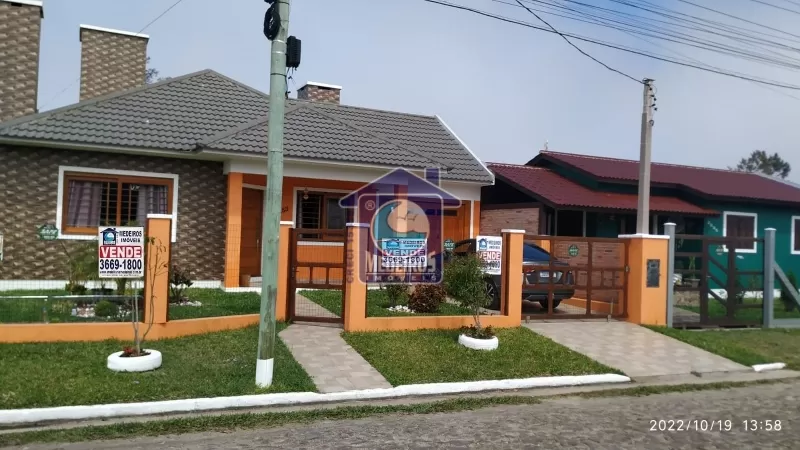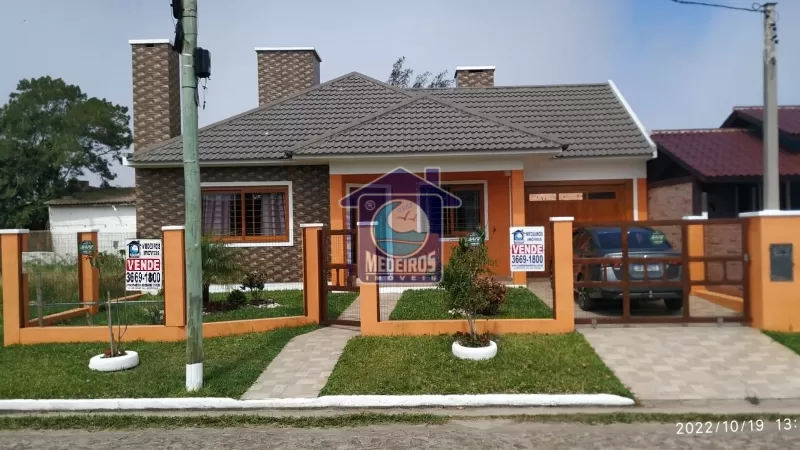 Casa de alvenaria com 03 dormitórios (sendo 01 suíte), 01 banheiro social, sala de estar, lareira, cozinha, garagem fechada, churrasqueira, piscina, alarme.