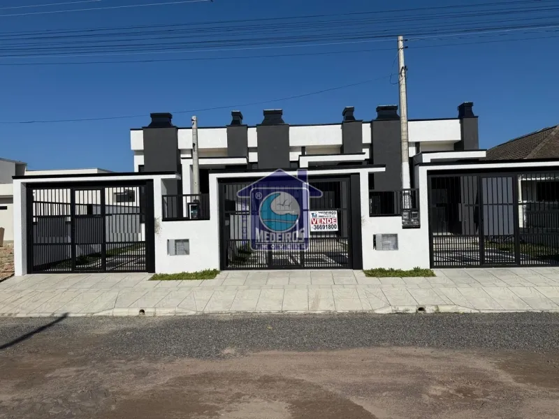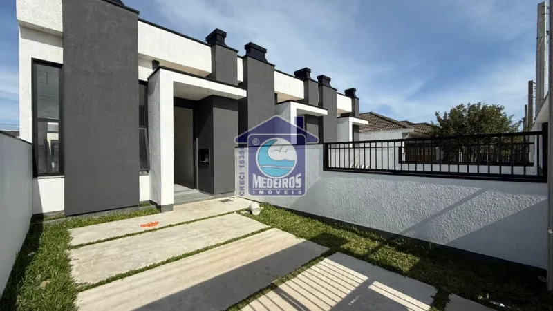 Casas medindo 76m² cada, terreno 5x25 (125m²), compostas por 3 dormitórios (sendo 1 suíte com closet), 1 banheiro social, sala, cozinha, pé direito duplo, churrasqueira, lareira, piso porcelanato, aberturas em alumínio na cor preta todas automatizadas, espera pra água quente, acabamento em gesso, cerca de vidro com portão de alumínio.