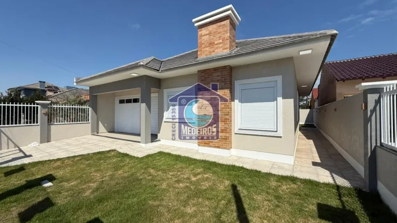 Casa de alvenaria com 143m² de área construída, terreno medindo 300m² (12x25), composta por 3 dormitórios (sendo 1 suite), sala 2 ambientes, lareira, cozinha, churrasqueira, 2 banheiros sociais, área de serviço, cozinha, varanda, cerca de vidro, garagem, alarme, laje e telha de concreto.