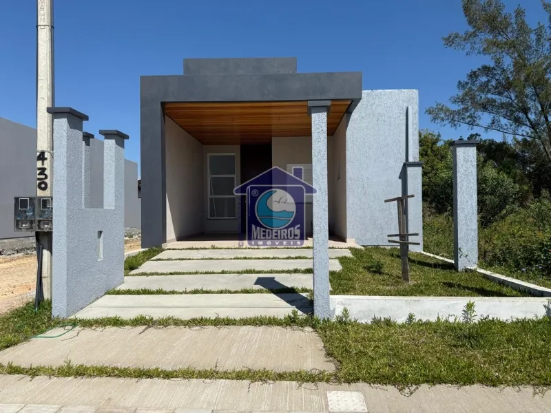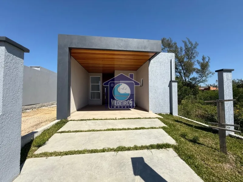 Casa de alvenaria com 98m² de área construída, terreno de 150m² (6x25), composta por 3 dormitórios (sendo 1 suíte), sala de estar, cozinha, 1 banheiro social, área de serviço, churrasqueira, abrigo para o carro, laje de concreto, porcelanato, acabamento em gesso, cerca de tela ou vidro (a escolher), e aberturas em alumínio.