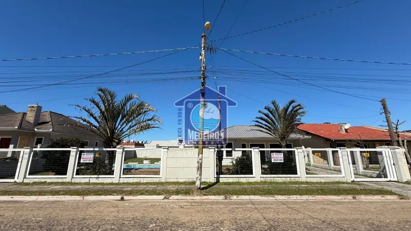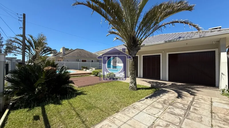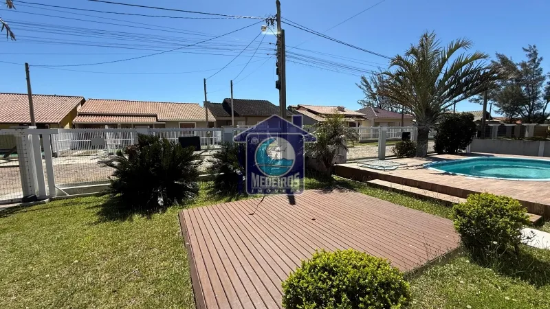 Casa de alvenaria com 120,58m² de área construída, 2 terrenos 600m² (24x25) composta por 3 dormitórios (sendo 1 suíte), sala de estar com lareira, sala de jantar, cozinha, 1 banheiro social, churrasqueira, mobiliada, alarme, varanda, garagem para 1 carro, piscina com deck de madeira, ar condicionado na suíte e na sala, laje de concreto, telha de barro, portão eletrônico, cerca de tela.