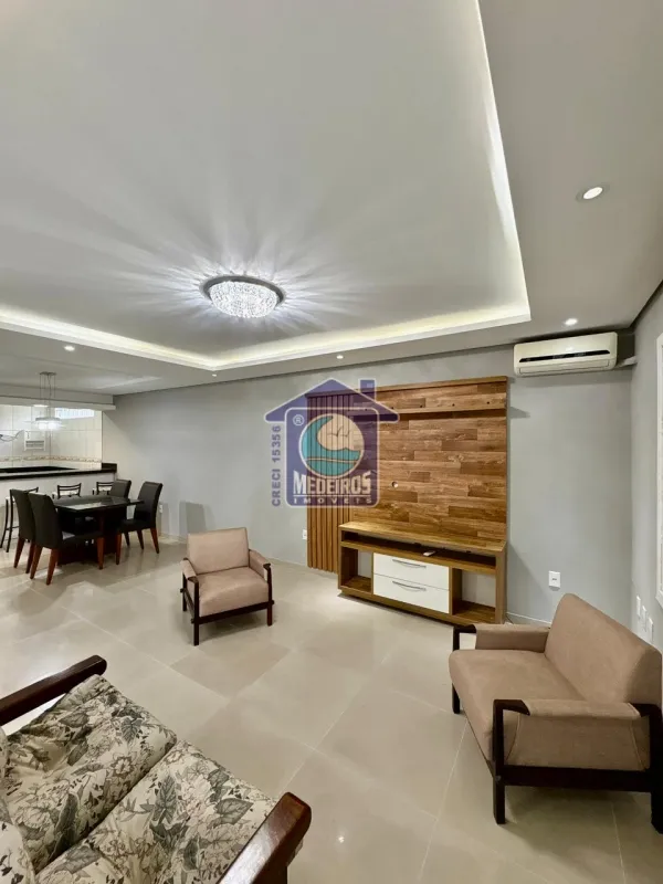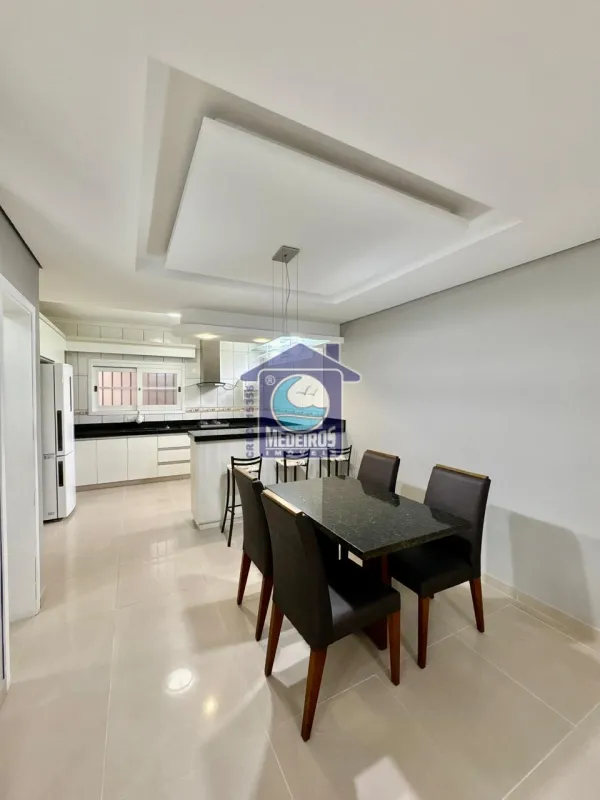 Sobrado de alvenaria com 141,75m² de área construída, composto no primeiro pavimento, sala de estar, sala de jantar, cozinha com mobília e eletrodomésticos, lavabo, área de serviço, espaço gourmet com pia e churrasqueira, o segundo pavimento é composto por 2 suítes com sacada, sendo 1 delas com closet, mobiliado, ambientes climatizados, abrigo para carro, laje de concreto, telha de barro, cerca de alumínio.