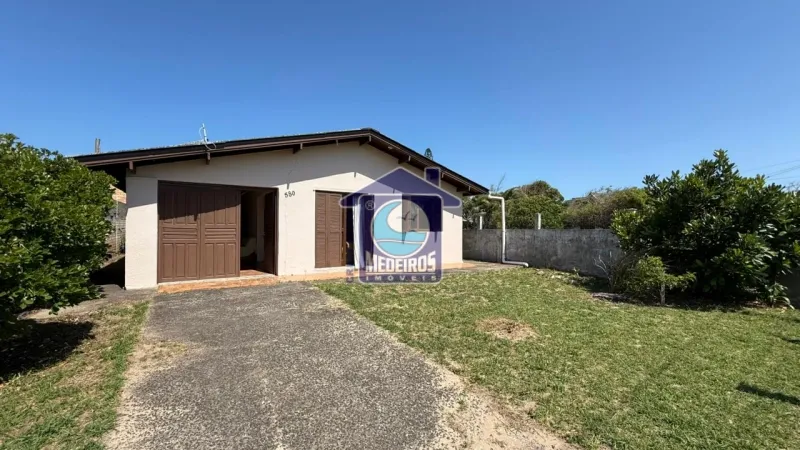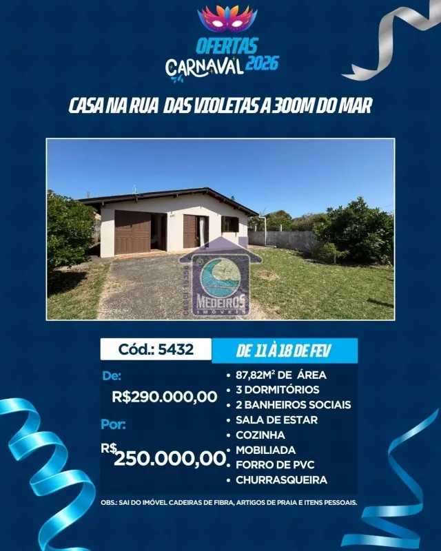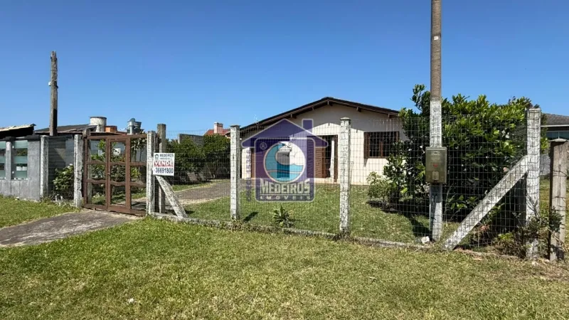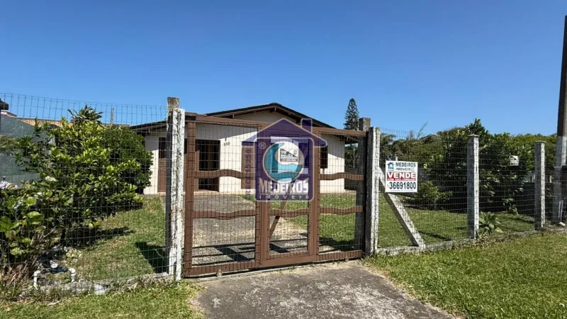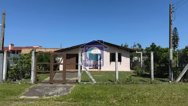 Casa de alvenaria com divisórias de madeira, com 87,82m² de área construída, terreno de 300m² (12x25), composta por 3 dormitorios, sala de estar, cozinha, 2 banheiros sociais, churrasqueira, mobiliada (sai cadeiras de fibra, artigos de praia e itens pessoais), alarme, varanda, forro de PVC, telha de amianto, cerca de tela.