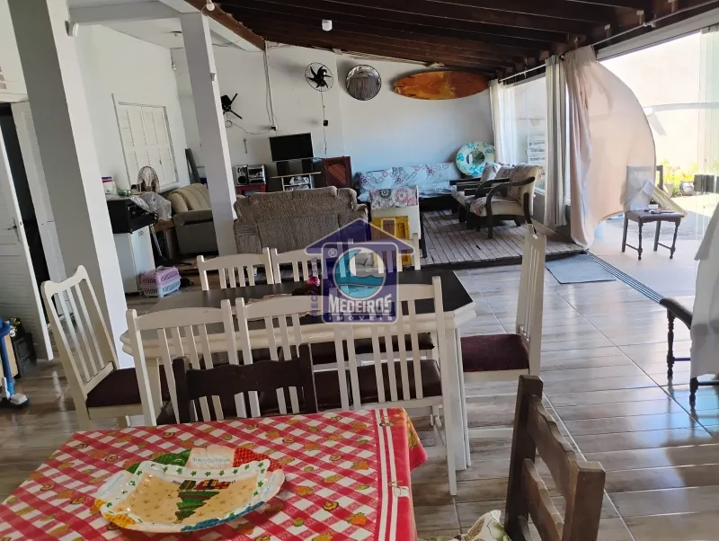 Casa de alvenaria com 3 dormitórios (sendo 1 suite), 1 banheiro social, sala de estar, cozinha, churrasqueira, piscina, internet.
