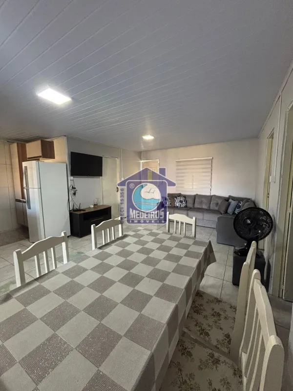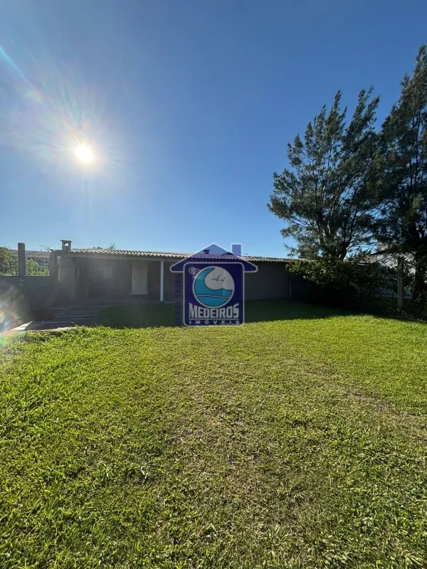 Casa de alvenaria com 4 dormitórios, 2 banheiros, sala de estar, cozinha, churrasqueira, internet, maquina de lavar, ventilador, ar condicionado em 1 dormitório.