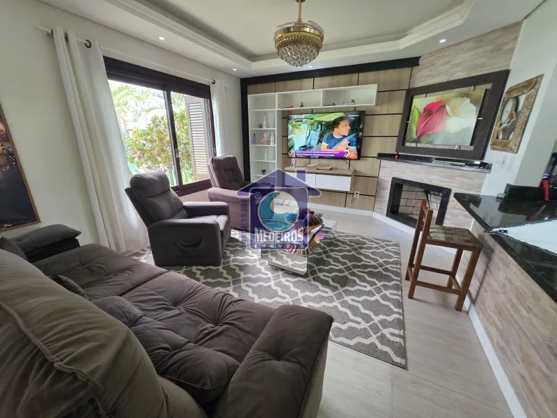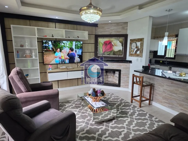 Casa de alvenaria com 3 dormitórios (sendo 1 suíte), 1 banheiro social, sala de estar e jantar, lareira, cozinha, lavanderia, área gourmet com churrasqueira, garagem fechada, piscina aquecida, alarme, ar condicionado, internet.