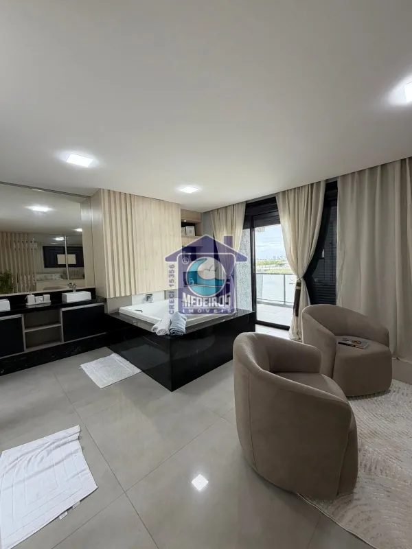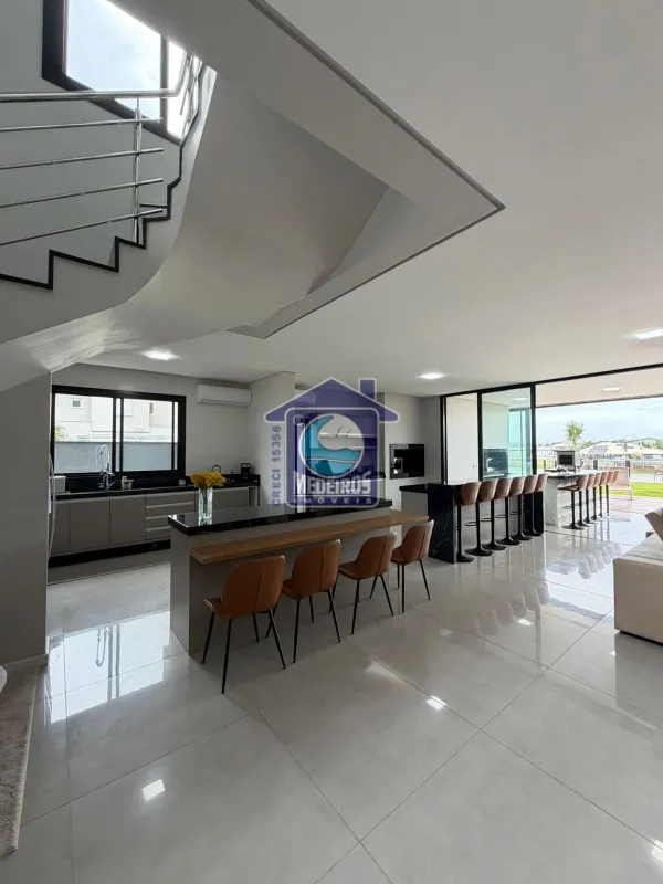 Sobrado no Condomínio Velas da Marina, de frente para a Marina principal com 415m² de área privativa, composto por 4 suítes, sala de estar, lareira, cozinha, 1 banheiro social, 1 lavabo, 2 churrasqueiras rotativas, espaço gourmet, semi mobiliado, garagem, abrigo para o carro, sacada, laje de concreto.