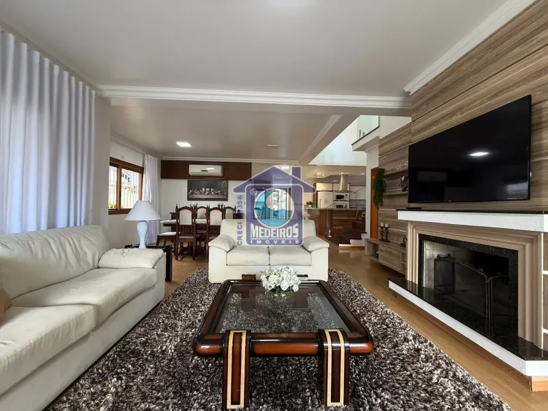 Casa de alvenaria com 260,86m² de área construída, terreno de 450m² (15x30), composta por 3 suítes, sala de estar, lareira, cozinha, 1 banheiro social, área de serviço, churrasqueira, mobiliada, garagem para 2 carros, piscina, laje de concreto, telha de concreto, portão eletrônico, cerca de tela.