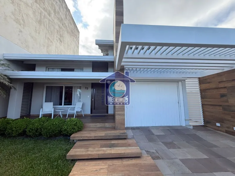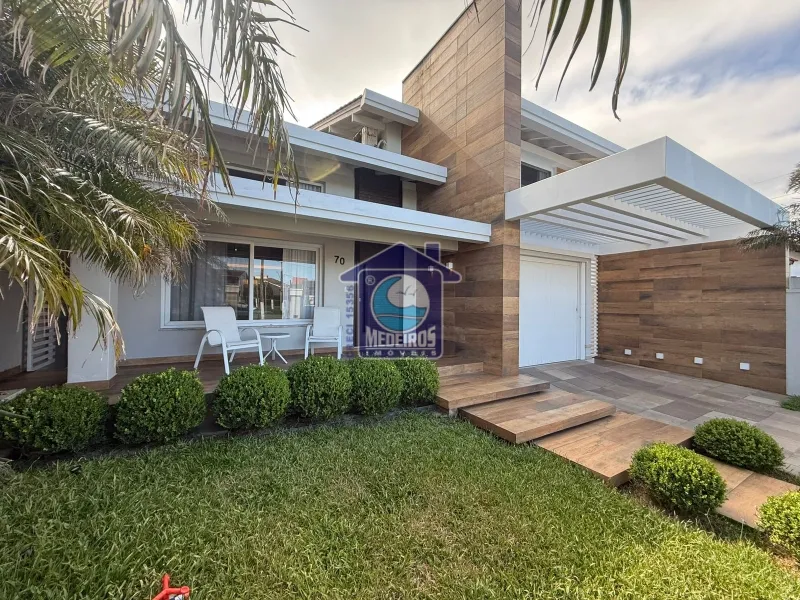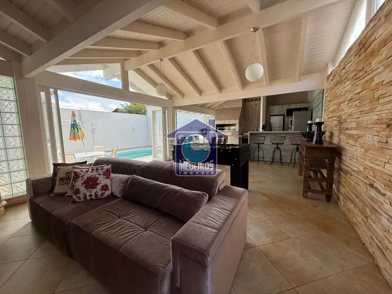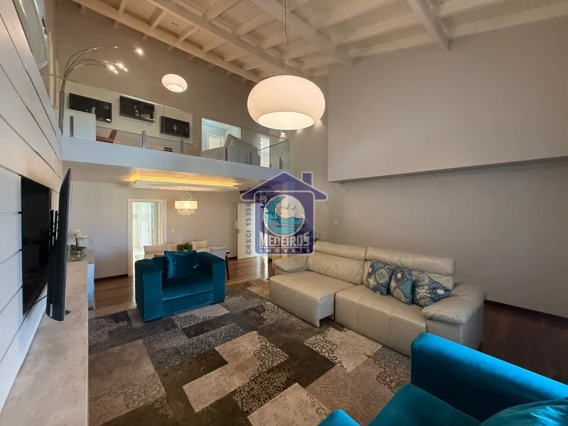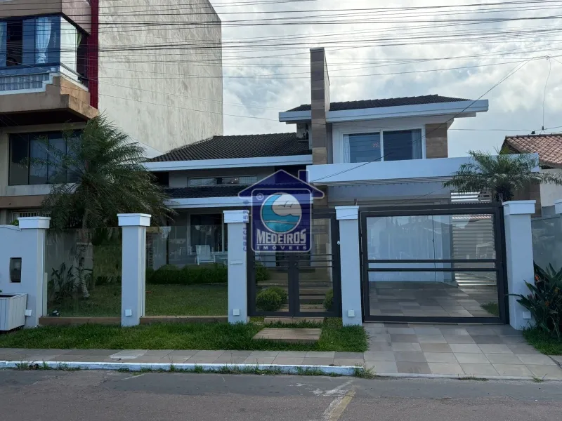 Sobrado de alvenaria com 227,74m² de área construída, terreno de 360m² (12x30), composto por 3 dormitórios (sendo 1 suíte), sala de estar, lareira, cozinha, 1 banheiro social, 2 lavabos, área de serviço, área gourmet com cozinha e churrasqueira, mobiliado, garagem para 2 carros, agua quente, piscina, ar condicionado, laje de concreto, telha de concreto, portão eletrônico e cerca de vidro.