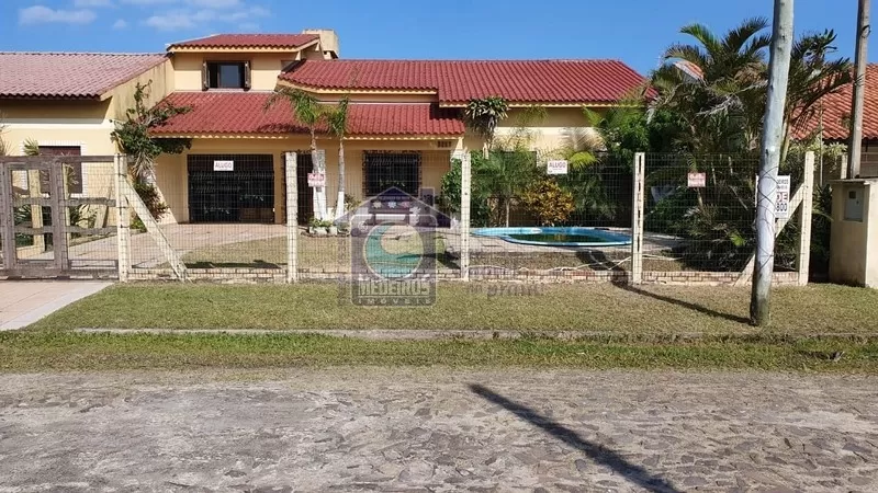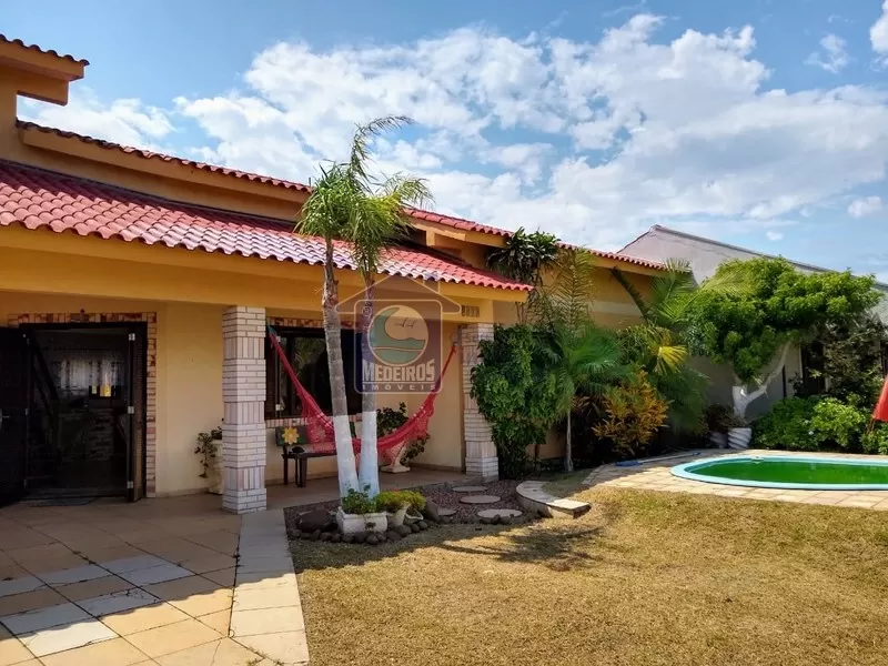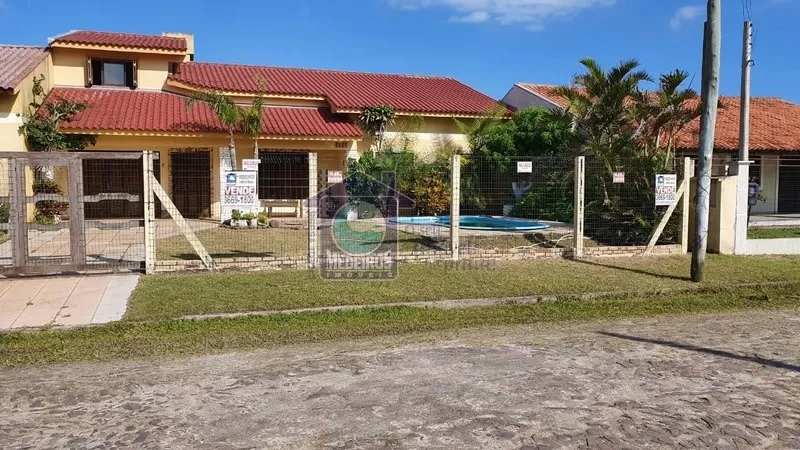 CASA COM PISCINA PRÓXIMA AO MAR. Casa de 220m² com 4 dormitórios (sendo 2 suítes), 1 banheiro social, sala, cozinha, área de serviço, varanda, churrasqueira, piscina, cerca de tela, telha vitrificada, forro de laje e alarme instalado, construído sobre um terreno de 375m².